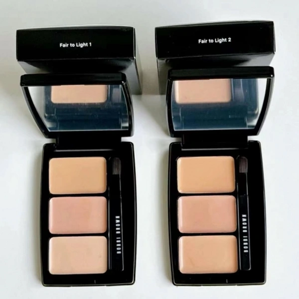 Fair to Light 1​: Corrector in Light Peach, Corrector in Bisque, Concealer in Warm Ivory.