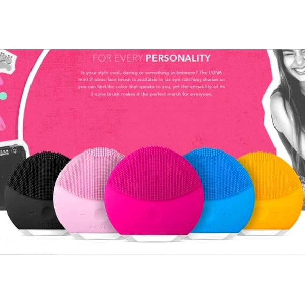 FACE BRUThe LUNA mini 2 is an enhanced T-Sonic™ face brush with eight adjustable intensities for a fully customizable cleansing experience. The updated 3-zone face brush is optimized for all skin types and comes in six exciting new colors.