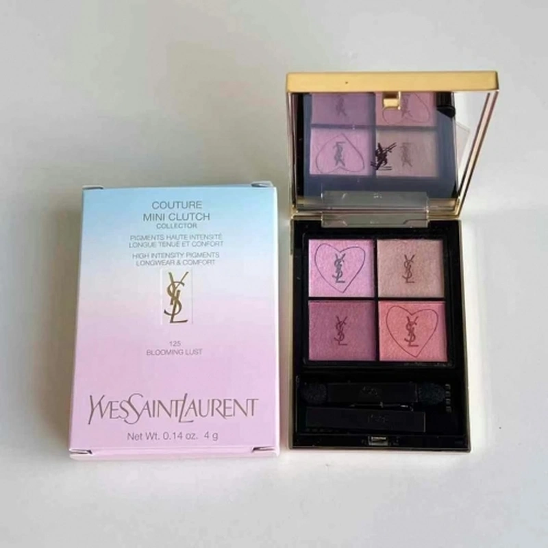 4 g. NET WT. YSL Beauté presents its new Couture Mini Clutch eyeshadow palette, a new object of desire both inside and out. Color: 125 Blooming Lust. The formula is enriched with precious oils: sweet almond oil, coffee seed oil & cactus fig oil from Ourika community gardens.